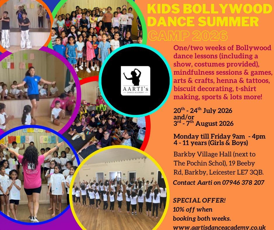 Aarti thanks so much for a fab week of dancing. Eva had a lovely time. At only 4 years old, she not only learnt all the dance moves which you taught all the children but also developed confidence to perform her first ever performance in front of an audience! This is thanks to your Bollywood dance workshop! You and Kay did a fantastic job looking after all them kiddies at all age ranges!! Looking forward to the next workshop! Thanks again Aarti xxx